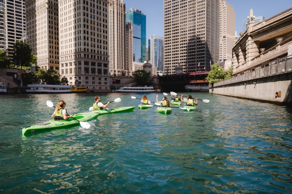 For a “duck’s-eye” view of the city, take Urban Kayak’s Historic Chicago Tour. Starting at the Riverwalk, tour-takers paddle their kayaks on the main branch of the Chicago River with periodic stops at points of historical interest, where guides provide information regarding the city’s famed architecture. Reviewers say this is a great experience, even for beginners, and recommend the tour for travelers looking for a unique alternative to the popular architecture river cruises. Meanwhile, others note that the experienced guides are skillful at navigating boat traffic.